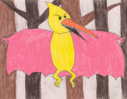 In Sweden lived a lot of strange animals. There were scaly lizards that could stand up and walk around, big elephants with curly curvy tusks, and bats with long sharp beaks.