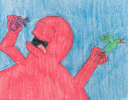 Mr. Hungry loved to eat and he ate everything he saw. He ate apples, he ate grass, he ate fish, and he ate birds. He would even eat something that he picked up from off the ground!